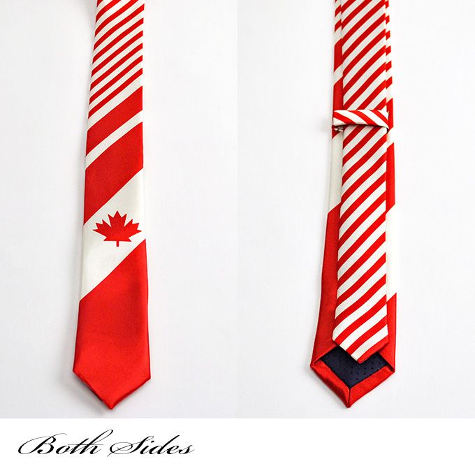 商品説明ホワイト、とレッドの2トーンカラーがお洒落なメープルモチーフのカナダの国旗カラーのナローネクタイです。
