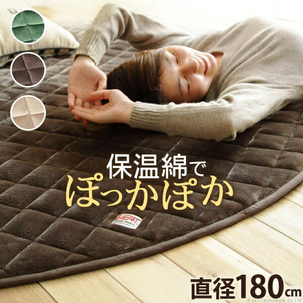 【カラーバリエーション】ベージュ・チャコールグレー・グリーン【仕様】表地:ポリエステル100%(フランネル)裏地:ポリエステル100%(不織布)中綿:ポリエステル100%撥水・防汚・滑り止め加工【サイズ】直径180cm重量:約2kg中綿:約760g便利雑貨 こたつ敷布団 丸形 無地 撥水フランネルこたつ敷布団 180x180cm丸型 保温綿 あったか ふわふわ とろける 敷き こたつ 敷き 無地 ベーシック 撥水 キルト 滑り止め 折り畳み コンパクト グリーン